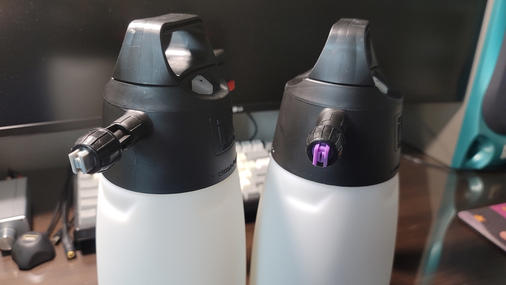 좌측은 멀티프로2의 기본 노즐이고 손잡이에 약품 구분을 위한 조립킷이 액세사리로 들어있습니다.